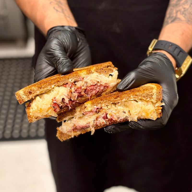 Stacked with tender corned beef, tangy sauerkraut, melted Swiss, and creamy Thousand Island Dressing on rye.